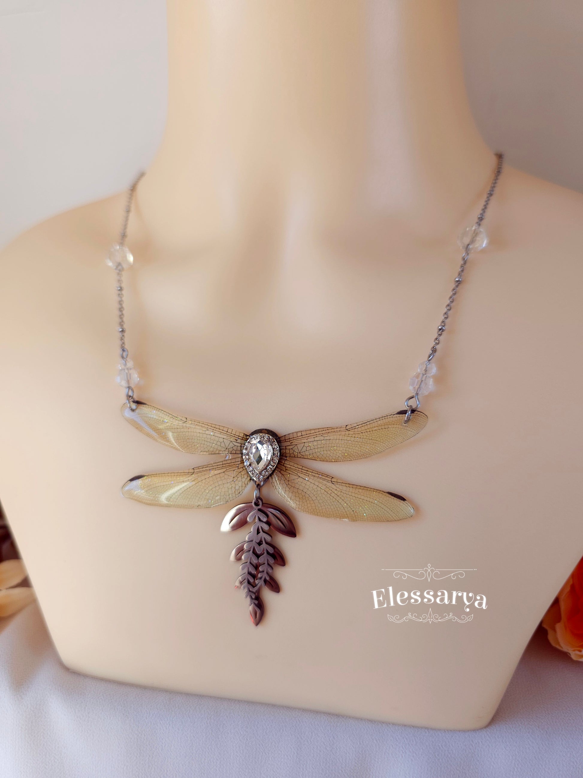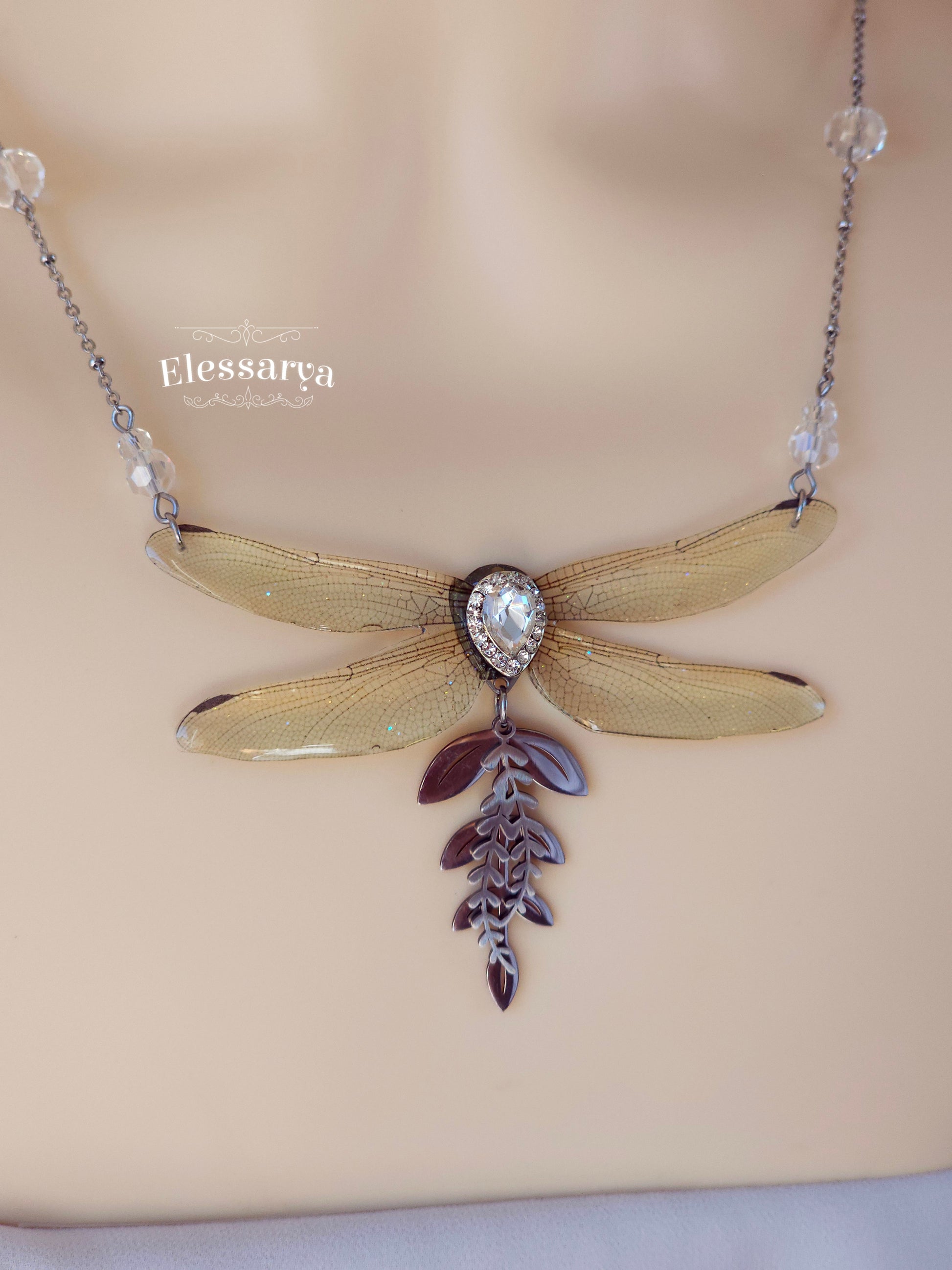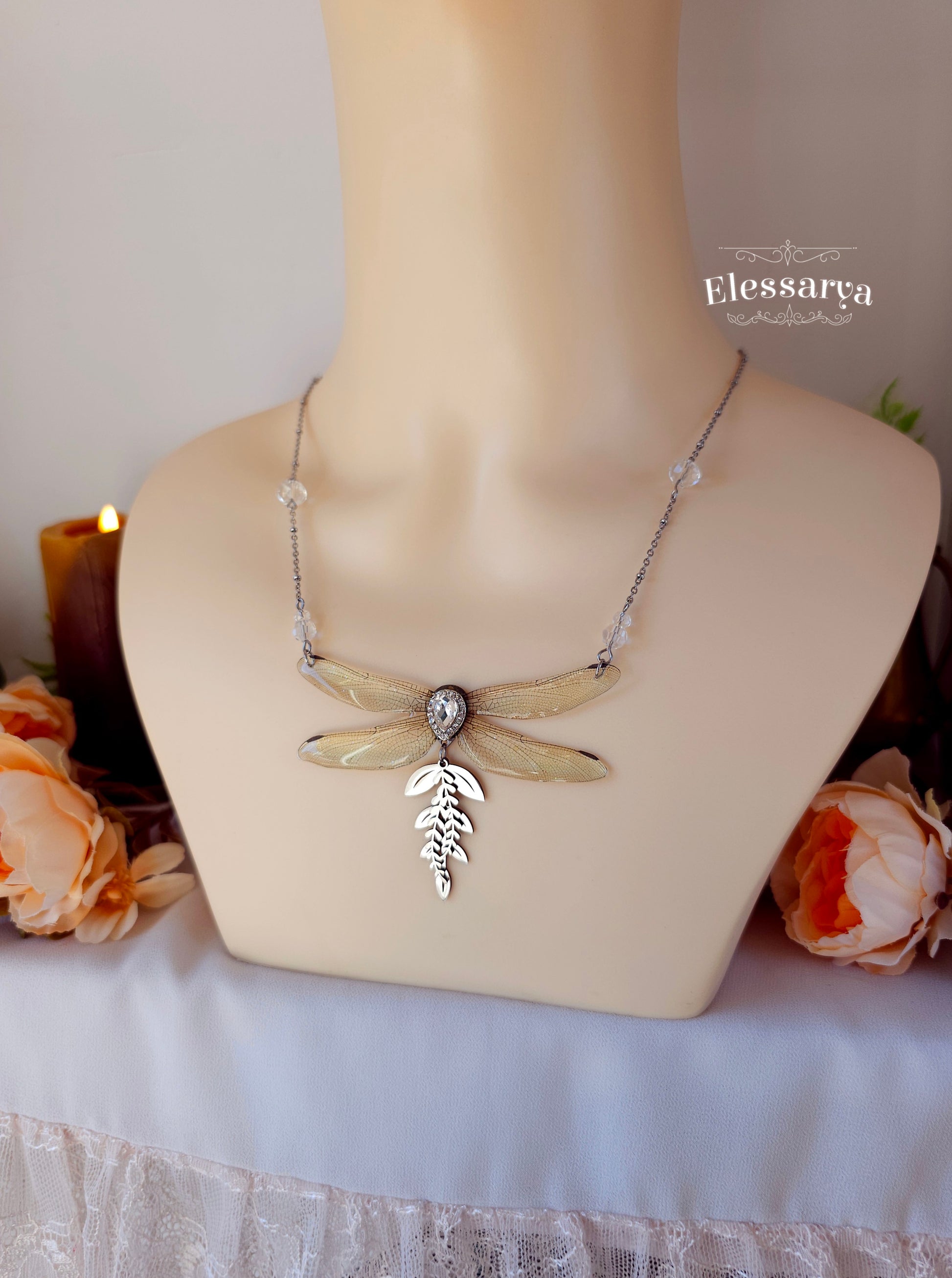 Colier delicat și rafinat, realizat din oțel inoxidabil hipoalergenic, cu un design inspirat din grația libelulelor și eleganța luminii naturale.