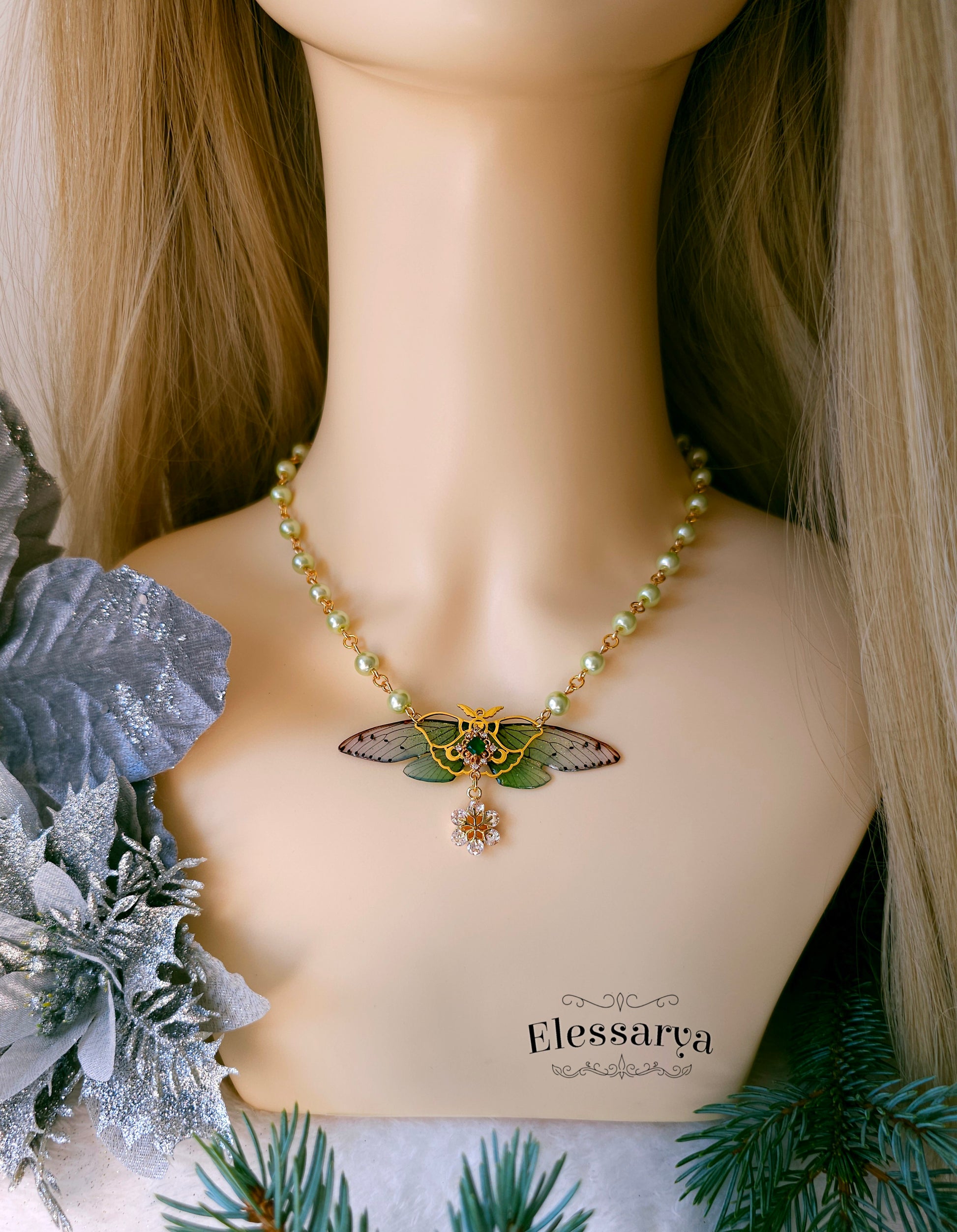 Un colier elegant și extrem de feminin, realizat pe un lanțișor din mărgele de perlă de sticlă în nuanțe pastelate de verde mentă. Metalul folosit este non-tarnish, adică un aliaj special tratat să nu oxideze, să nu se înnegrească și să rămână strălucitor în timp — perfect pentru bijuteriile purtate direct pe piele, în zona gâtului.