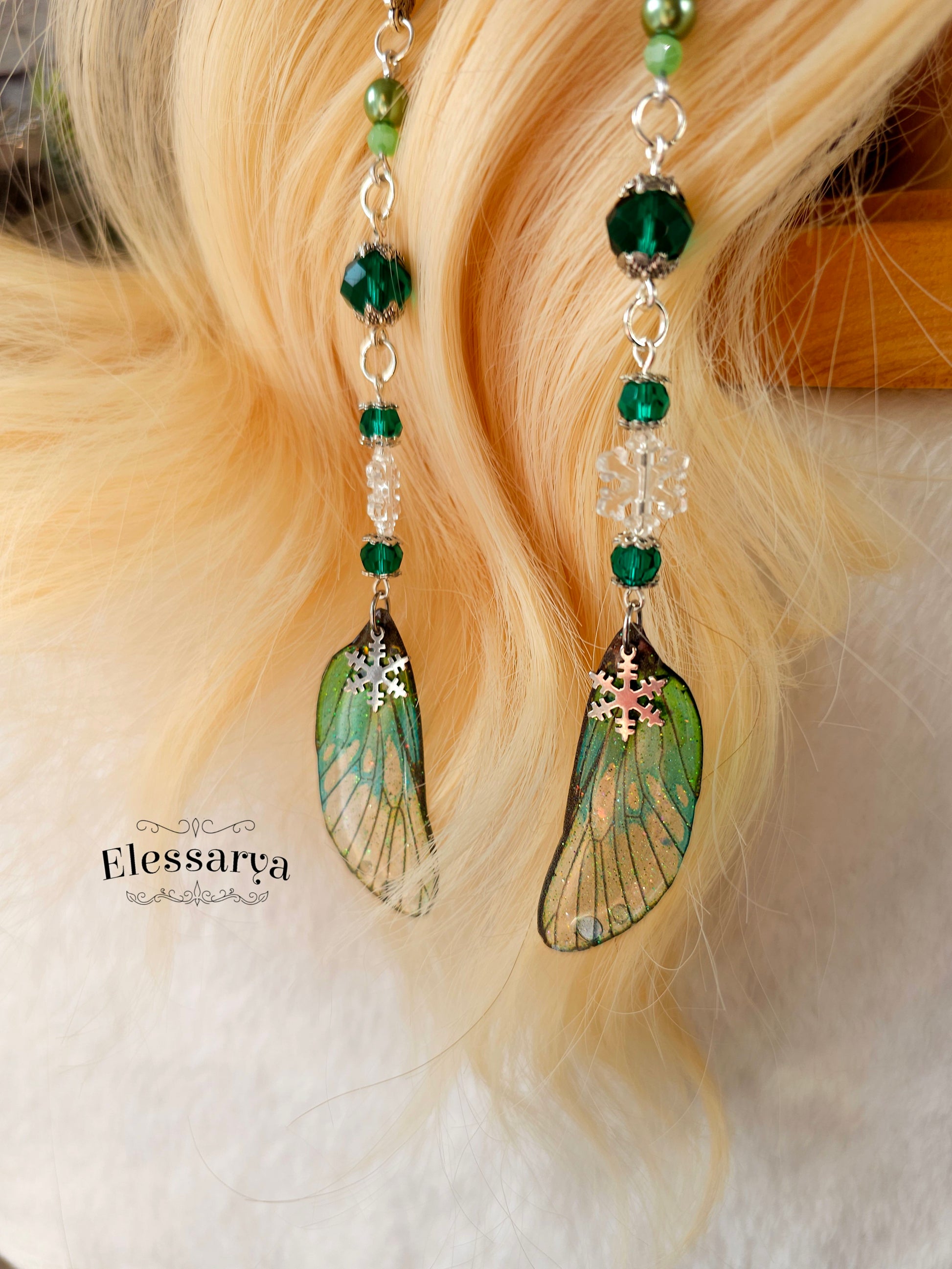 Aripile verzi-smarald, lucrate manual din rășină nontoxică, prind lumina exact ca frunzele ude ale unei păduri de dimineață, cu sclipiri fine și nuanțe care trec de la verde crud la verde închis, aproape misterioase.